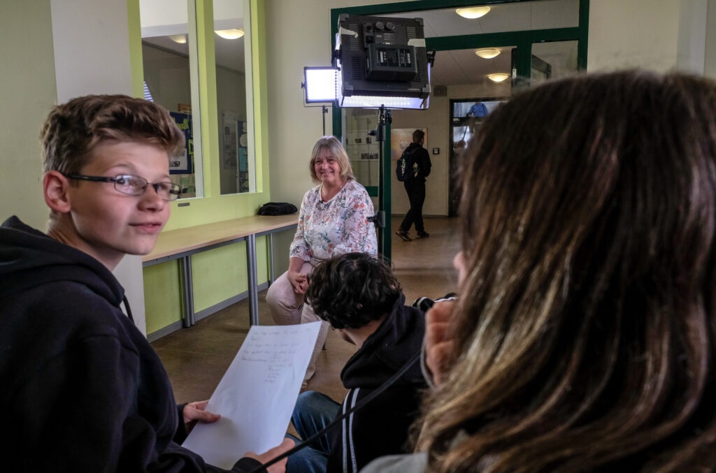 Nach Gründung einer fiktiven Werbeagentur wurde das Projektteam per E-Mail mit der Erstellung eines Imagefilms für die Libertasschule in Löwenberg beauftragt. Wo anfangen und vor allem wie? Viel Zeit verbrachten die Schüler:innen anfangs mit der Recherche. Was könnte jemand wissen wollen, der die Libertasschule wie seine eigenen Westentasche kennt? Als sie alle nötigen Informationen zur Schule zusammen hatten, wurde das Storyboard erarbeitet und Szenen detailliert geplant.