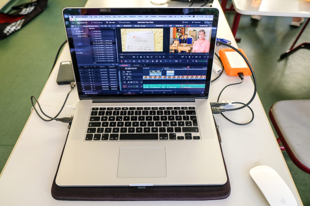 Danach ging es zum Dreh. Von wegen einfach! Zwar nutzen die Schüler:innen Smartphones. Doch die verschiedenen Kameraperspektiven kannten nur wenige und so war erst einmal Üben angesagt. Später wurden Interviews geführt und typische Schulszenen gefilmt. Die Regie und den Filmdreh haben die Teilnehmer:innen selbst organisiert und in der Postproduktion den Imagefilm fertiggestellt. Sogar die Musik stammte von einem Schüler. Passend zu den einzelnen Arbeitsschritten erhielten alle theoretisches Basiswissen bzw. Hintergrundwissen zum Anforderungsprofil und möglichen Berufsbildern eines Mediengestalters.